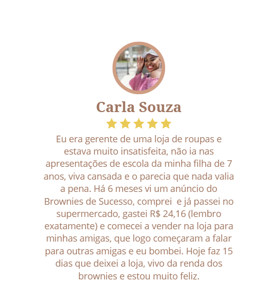 Pela primeira vez liberei todo o método que me fez deixar de trabalhar como CLT e abrir minha empresa em casa, com um filho de 4 anos em 2016. Nunca mais precisei abrir das festas escolares, dos aniversários dele, de poder me cuidar e ter tempo para minha família. Em 2 meses saí do meu emprego após faturar R$ 6242,00 em um único mês e meus brownies ficaram conhecidos em toda a região e passei a ter clientes de outras cidades que vinham só para comprar os brownies.